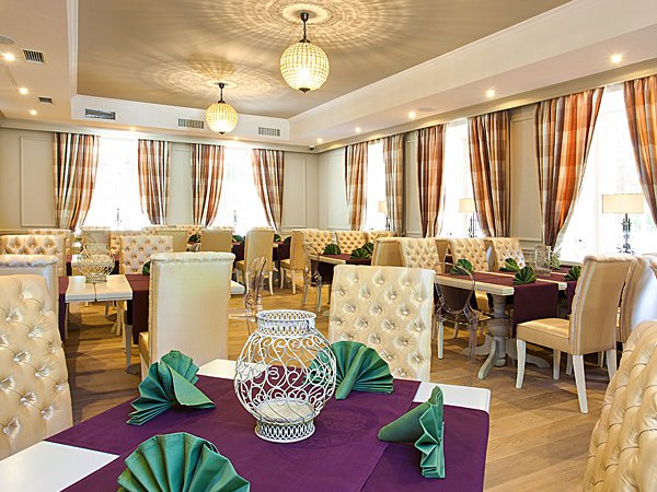 Salę restauracyjną, Foyer i Winiarnię urządzono w różnych stylach, tak by każdy z naszych gości znalazł dla siebie właściwe miejsce. Specjalizujemy się w kuchni europejskiej. Wykwintne potrawy przyrządzane przez naszych kucharzy urzekają nie tylko smakiem i aromatem, ale również niezrównaną elegancją podania do stołu.